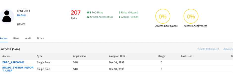 With its robust risk analysis capabilities, SAP IAG identifies and evaluates potential risks associated with user access. It conducts in-depth assessments, highlighting access combinations that might pose security threats or regulatory non-compliance. This proactive approach enables organizations to mitigate risks effectively. SAP IAG offers refinement options such as Simple Refinement, and Advanced Refinement in addition to the regular Mitigation options.