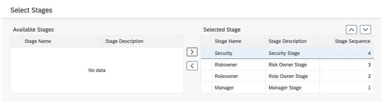 NOTE: Currently SAP IAG support only 4 pre-defined stages, i.e., Security, Risk Owner, Role Owner and Manager. No additional stages can be created.